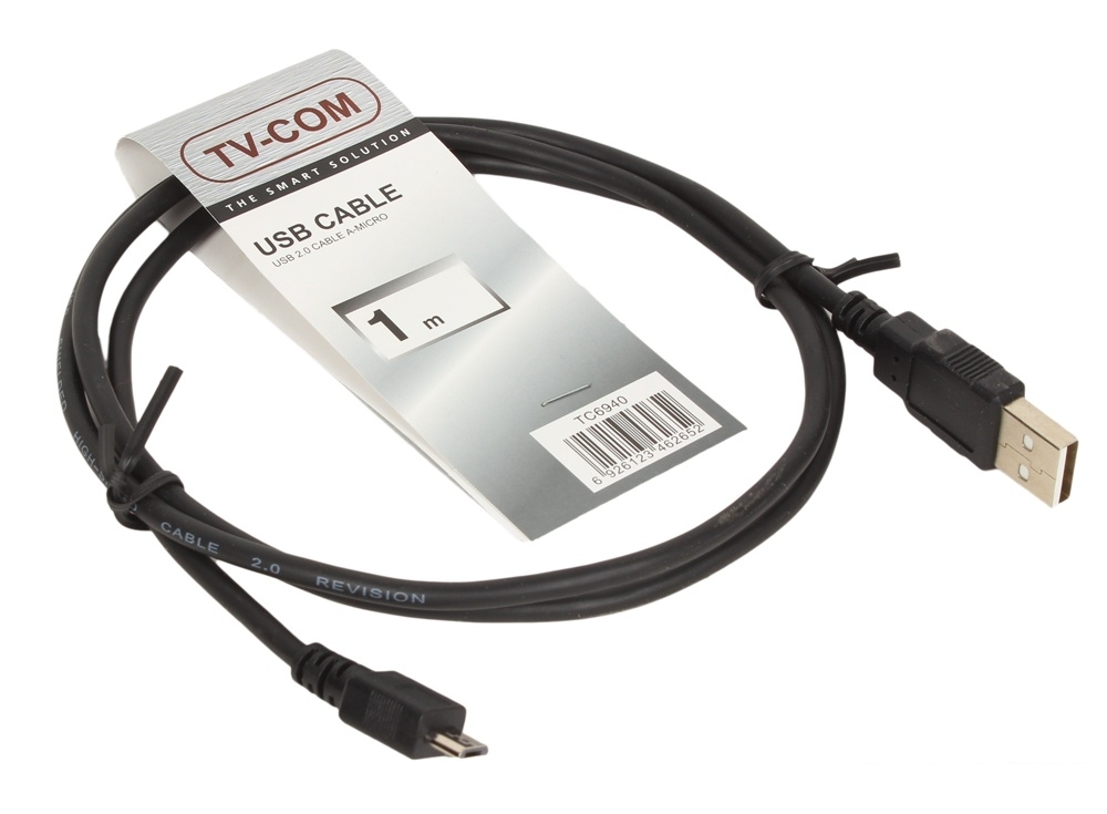 Кабель формат microUSB - USB длиной в 1 метр, произведенный компание TV-COM.