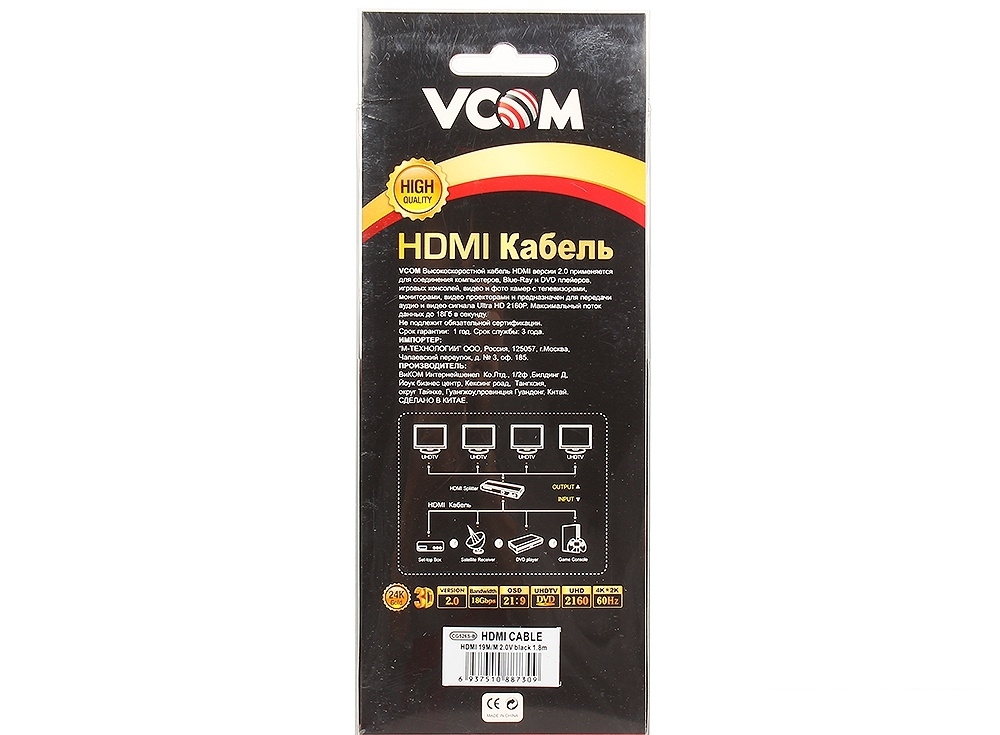 Перед вами высококачественный HDMI-кабель, предназначенный для подключения к телевизору, проектору или монитору широкого спектра мультимедийной техники: игровых консолей, медиаплееров, проигрывателей Blu-ray, ноутбуков, планшетов и так далее.