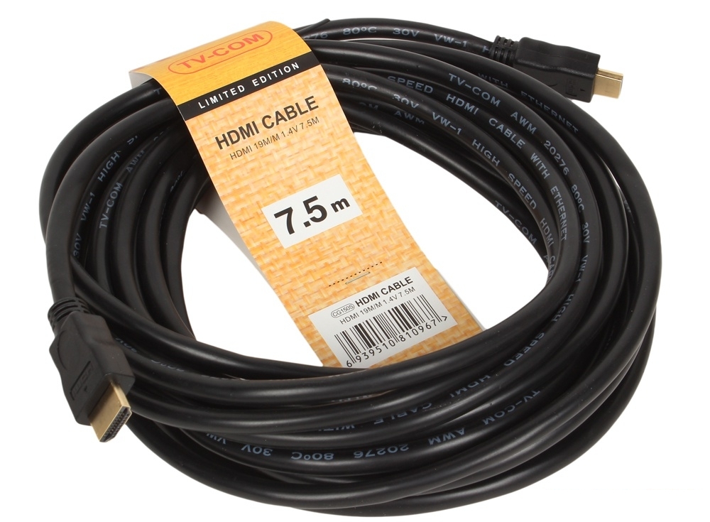 Данный кабель от именитой компании TV-COM обладает длиной в 7,5 метров и отличается великолепным качеством исполнения. Передаваемая с его помощью картинка получается максимально контрастной, четкой и начисто лишенной помех или каких-либо артефактов.