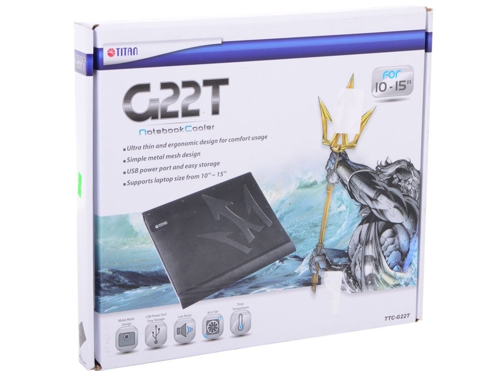Titan TTC-G22T — универсальная подставка под ноутбуки 10-15 дюймов. Ее основная задача: отводить тепло от рабочих элементов компьютера во время интенсивной работы. Кроме того, она обеспечивает комфорт при работе с лэптопом, когда он стоит на коленях.