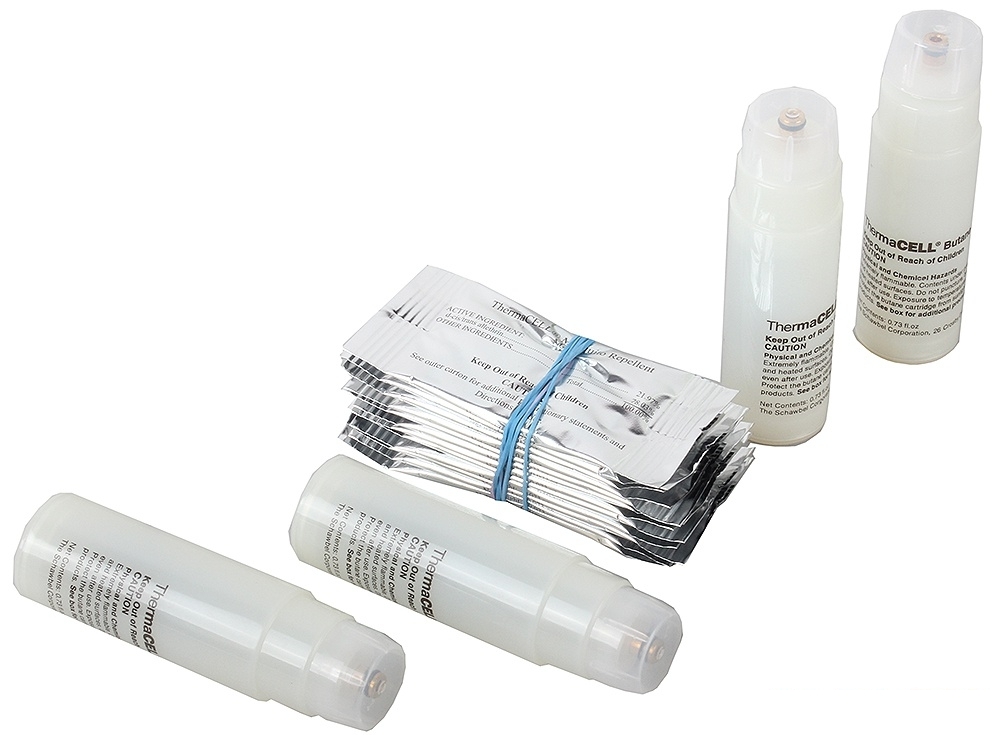 Фирма ThermaCell является известным производителем качественных устройств и средств для борьбы с различными насекомыми. В данный набор входят 4 газовых баллона с бутаном, имеющих длительность работы 12 часов и 12 специальных пластин с репеллентом, обеспечивающих до 4 часов эффективной работы. Все компоненты набора абсолютно безопасны для человека и не имеют характерного неприятного запаха.