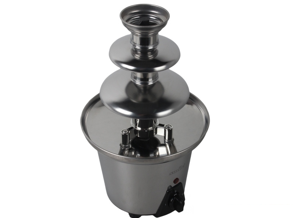| Дополнительно | Тёплый шоколад подаётся на верхнюю точку фонтана с помощью шнекового вала и стекает мягкими каскадами вниз по фонтану3-х ступенчатый переключатель режимов работыДвигатель и нагрев включаются / выключаются отдельно друг от друга |
