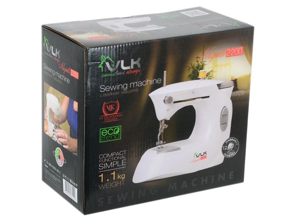 | Комплект поставки | Швейная машина, шпуля, игла, инструмент для подводки нити, малый и большой держатель шпули, ножной привод, адаптер питания, зажим для намотки нити, документация |