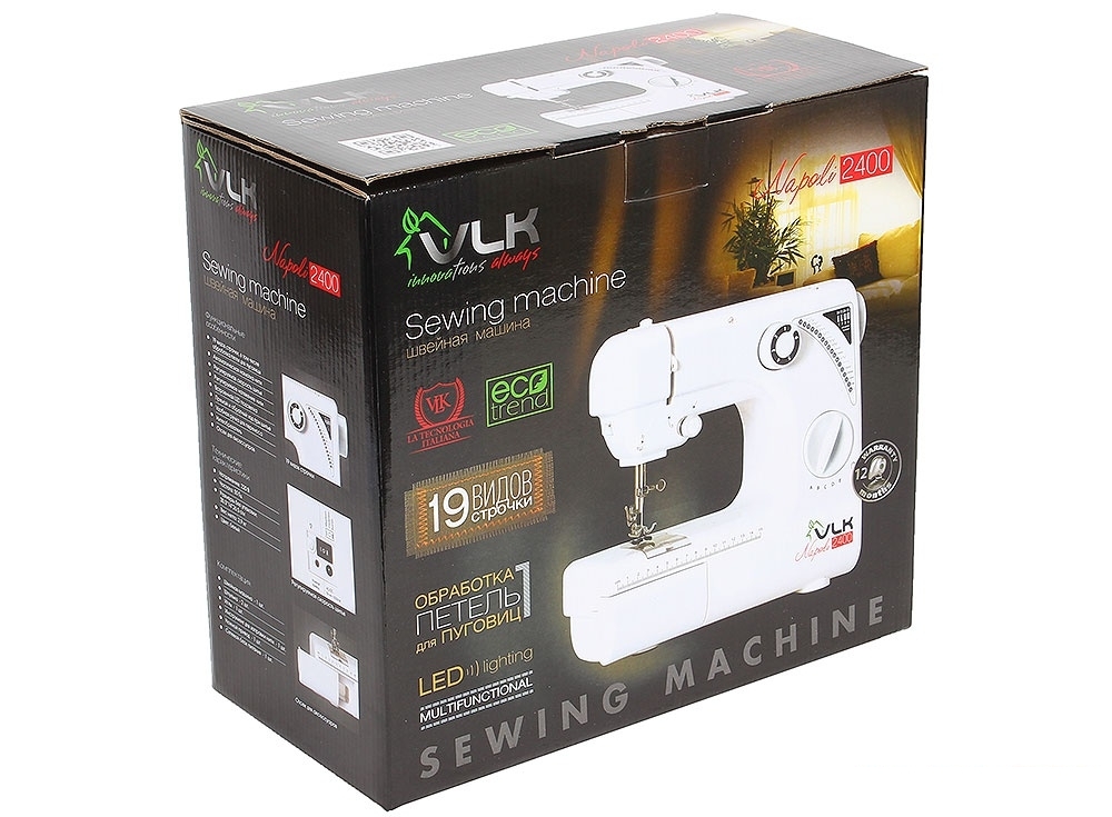 Швейная машина модели VLK Napoli 2400 – современная модель для всех любителей шитья. Отличная модель с приемлемым соотношением цены и качества. Представляет из себя техническое устройство для соединения или отделки различных материалов методом шитья. Представленная модель отлично подойдет для домашнего использования в силу своего большое функционала и небольших габаритов корпуса.