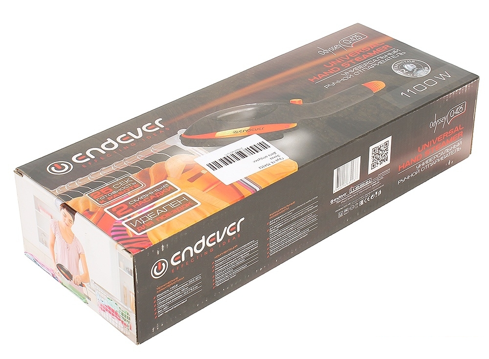 | Комплект поставки | Отпариватель, насадка с мелковорсистой подушечкой, насадка-зажим для отпаривания тканей и наведения стрелок на брюках, щетка для очистки насадок, мерная емкость, документация |