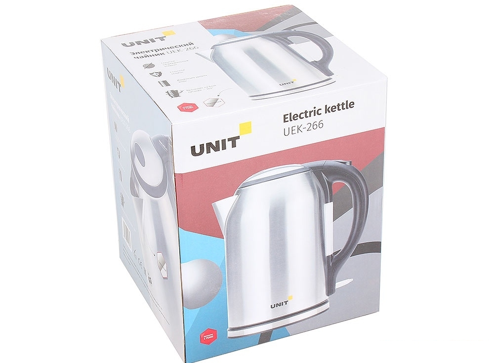Тех пользователей, которые всерьез задумались о приобретении неотъемлемого атрибута любого дома – устройства для подогрева воды, бесспорно, заинтересует чайник электрический UNIT UEK-266, сталь, Глянцевый, 1.8л., 2000Вт. Данное приспособление отличается не только стильным внешним дизайном, выполненным в стиле минимализм, но также качеством комплектующих и надежностью, проверенной многочисленными испытаниями. Стоит также отметить, что мощность и объем модели – 2000 Вт и 1,8 л, соответственно, делают ее отличным решением, как для большой, так и для маленькой семьи.