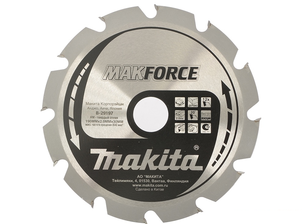 Пильный диск Makita 190х30х2мм 12зуб по дереву B-29197