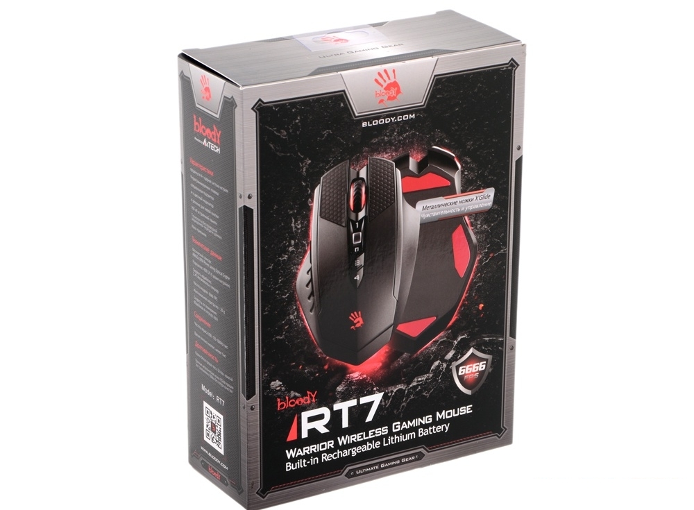 Превосходная игровая компьютерная мышь от известного производителя качественных комплектующих - фирмы A4-Tech подарит вам море удовольствия и незабываемых ощущений в увлекательном мире компьютерных игр. Эргономичный корпус A4-Tech Bloody Warrior RT7, выполненный в ультрасовременном стиле размещает на себе 9 удобных программируемых кнопок и колесо вертикальной прокрутки. Благодаря миниатюрному USB приемнику с частотой беспроводной связи – 2,4 Ггц, обеспечивается соединение в радиусе до 10 метров. Разрешение оптического сенсора составляет 4000 dpi, что дает непревзойденный уровень контроля и управляемости.