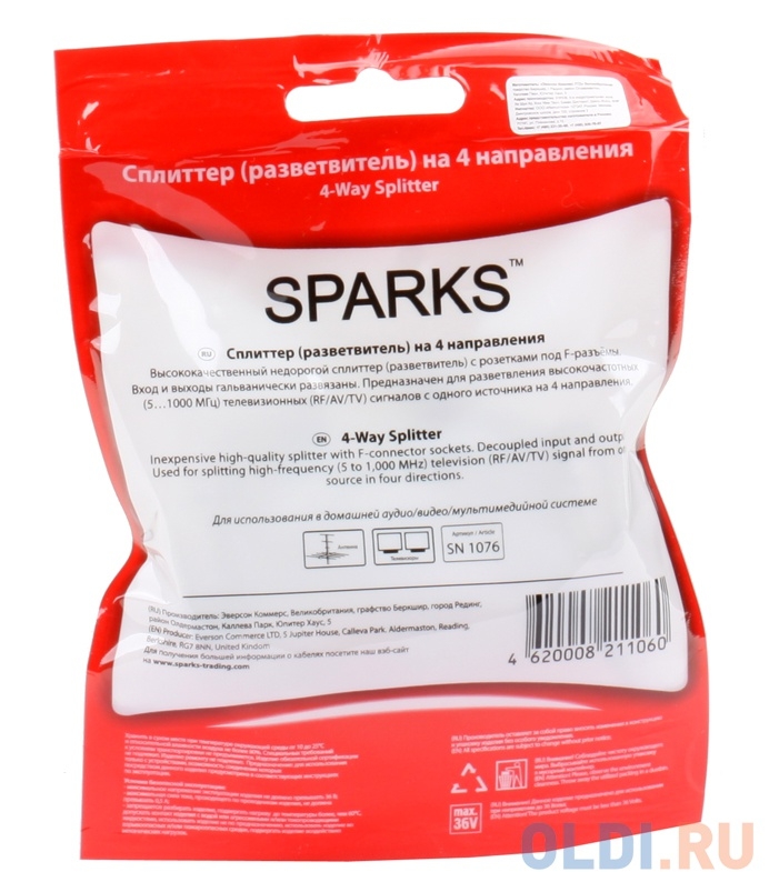 | Дополнительно | Один вход, четыре выходаПоддержка сигналов RF/AV/TV (5 - 1000МГц)Разъемы F "мама"Возможность крепления к стене |