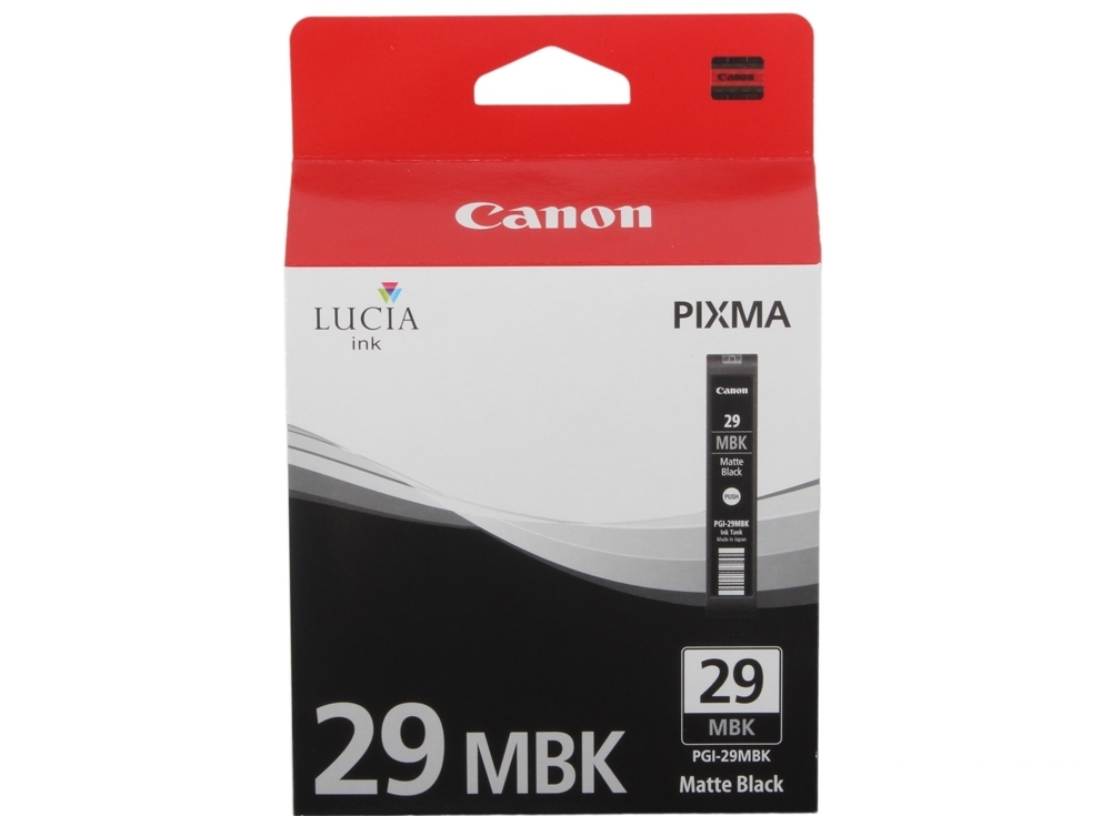 Специально для создания хороших снимков и ярких фотографий с насыщенным цветом на принтере Canon Pixma Pro-1, компания Canon выпускает свои картриджи с системой цвета LUCIA, которая позволяет достигнуть максимально насыщенного и качественного изображения. Картридж PGI-29MBK содержит 32 мл матовый черных чернил, его ресурса хватит примерно на 505 фото формата А3+.