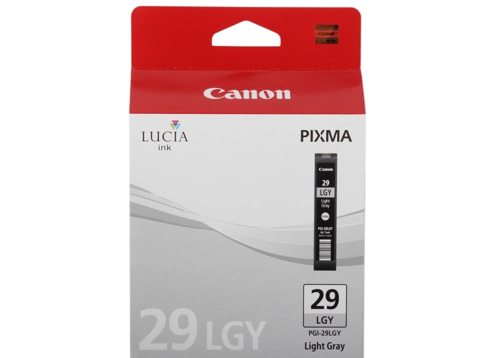 Для максимально ярких и четких фотографий компания Canon разработала принтер Pixma Pro-1 и комплект оригинальных картриджей к нему. Одним из комплекта является светло-серый картридж PGI-29LGY, фото-чернила LUCIA профессиональные. Картриджа объемом 36 мл рассчитан, примерно, на 1320 фото формата 10 х 15 см, или 352 фото формата А3+ при условии заполнения изображения цветом не более 5%.