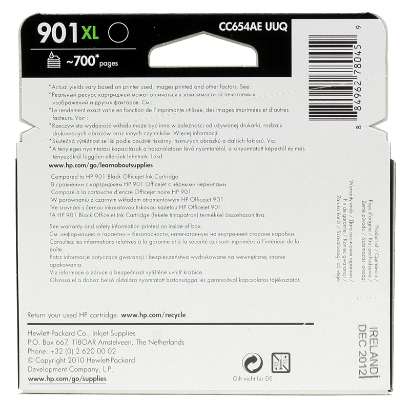 Картридж HP CC654AE (№901XL) Black пригодится владельцам струйных печатных устройств из серии Officejet, разработанное и поставляемой всемирно известной компанией Hewlett Packard. Он совместим с моделями принтеров J4580, 4640 и 4680. Заявленный ресурс достигает 700 страниц при условии 5% заполнения листа текстом, предоставляемый объем тонера – 13,8 мл.
