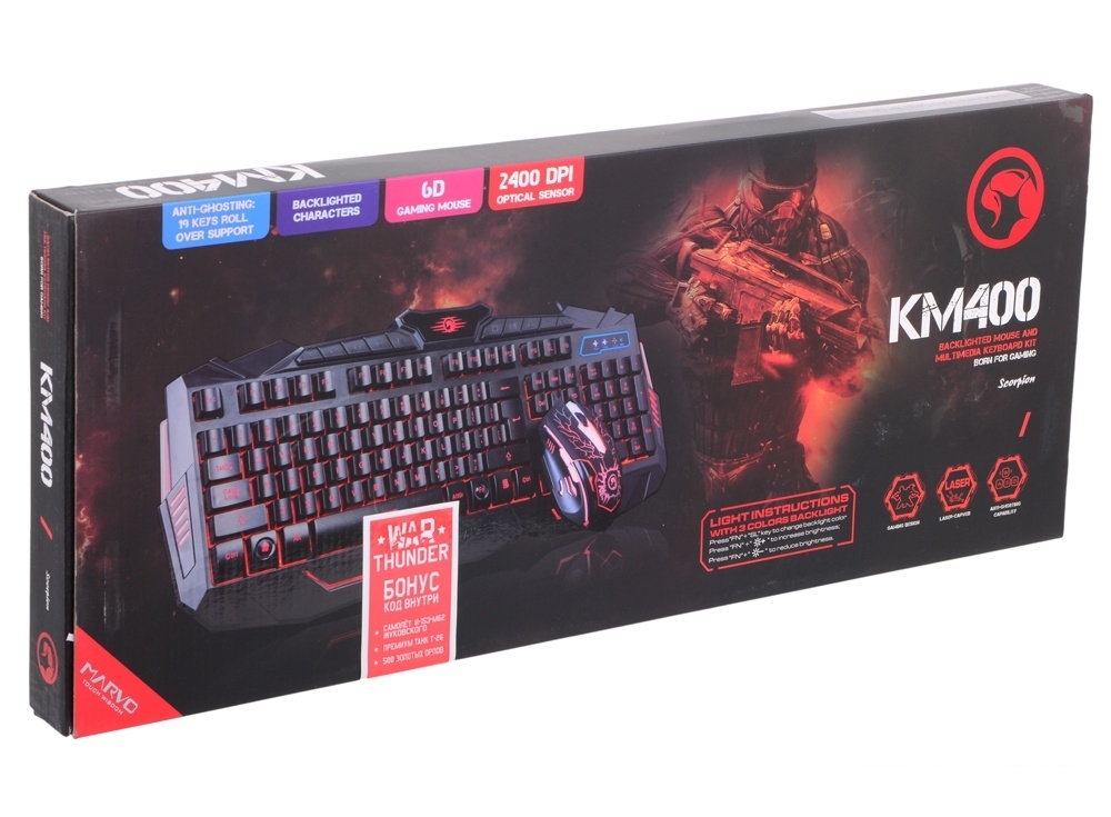 | Клавиатура | МембраннаяПодсветка: 3 цветаМультимедиа клавишиКоличество одновременных нажатий: 19 KROОтклик: 1 мсДренажКабель в виниловой оплетке (1.5 м) |