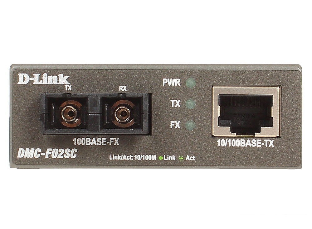 Главная задача данного медиаконвертера заключается в том, что он преобразует сигнал из стандарта 10BASE-T/100BASE-TX Fast Ethernet на витой паре в сигнал стандарта 100BASE-FX Fast Ethernet по многомодовому оптическому кабелю. Максимальная длина оптического кабеля составляет 2 км. Прибор оснащен 1 портом RJ-45 для витой пары и 1 оптическим портом. В DMC-F02SC используется разъем SC. Конвертер поддерживает функцию LLR для оптического порта.