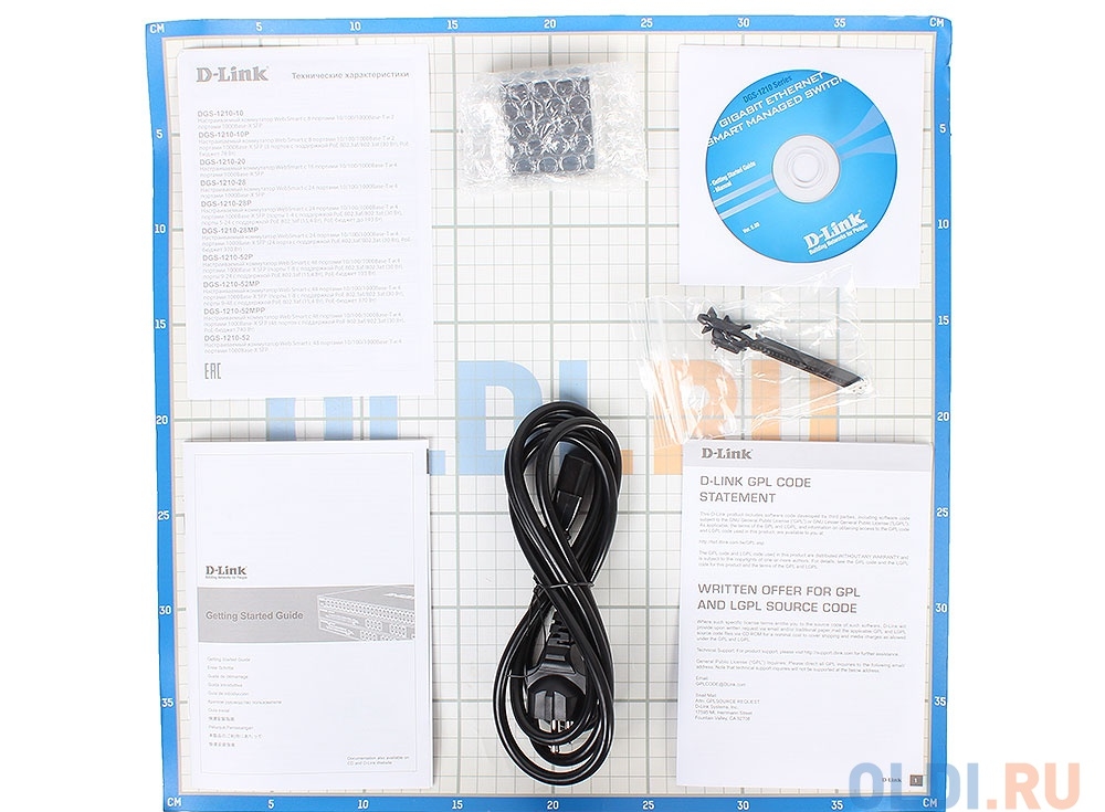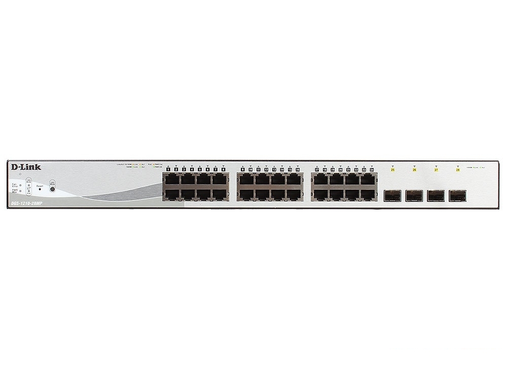 | Комплект поставки | Коммутатор DGS-1210-28MPКабель питанияФиксатор для кабеля питания4 резиновые ножки2 крепежных кронштейна для установки в 19-дюймовую стойкуКомплект для монтажаКраткое руководство по установкеКомпакт-диск |