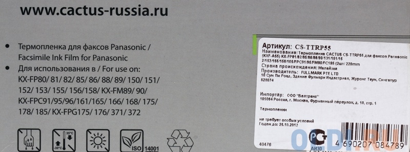 | Тип | Термолента для факса |