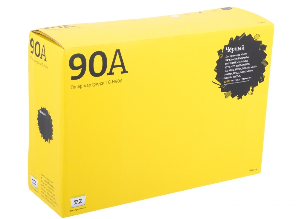 T2 TC-H90A представляет собой черный картридж, использующийся в следующих моделях лазерных устройств: HP LaserJet Enterprise M601/M602/M603/M603xh/M4555.