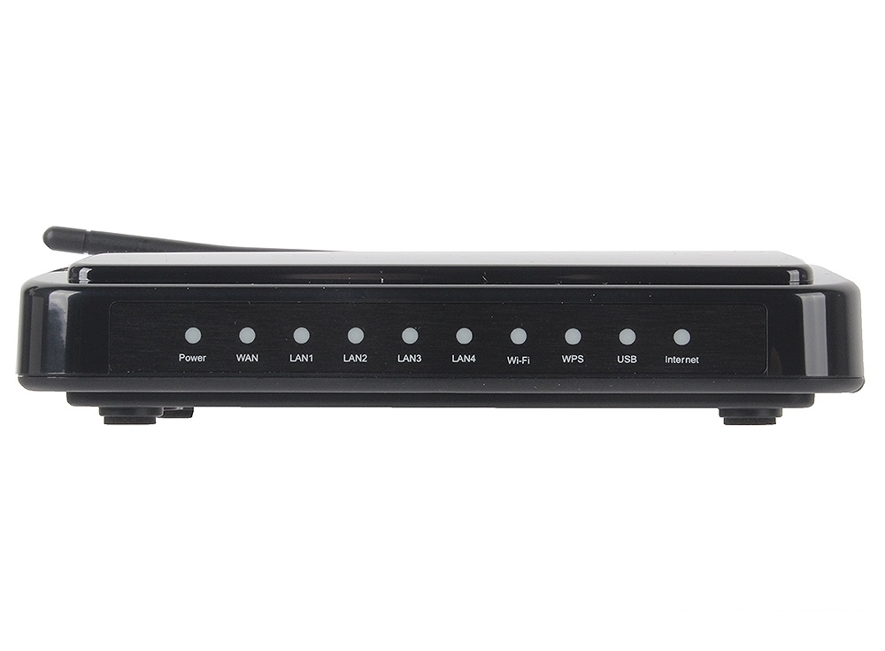 | Физические характеристики | • Две несъемные антенны • Индикаторы: питание, Status, LAN1 — LAN4, WAN, WLAN, USB • Внешний адаптер питания от сети • Возможность крепления к стене • Размеры устройства: 160 х 110 х 33 мм • Вес устройства: 0.215 кг |