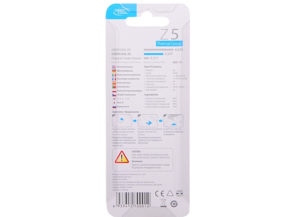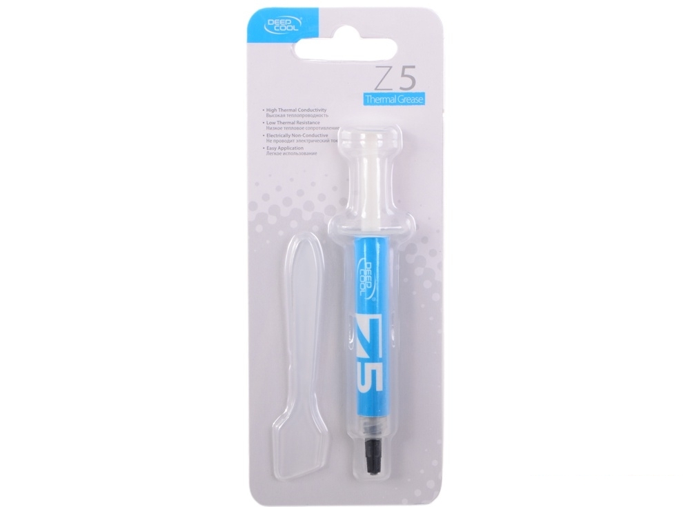Термопаста – средство, предназначенное для быстрого и качественно провести тепло от чипа к радиатору системы охлаждения. Одной из самых первых термопаст была родом из СССР - это всем известная КПТ-8. Но времена изменились и теперь на прилавках большой выбор различных термопаст. Среди широкого ассортимента стоит выделить DeepCool Z5. Это термопаста от известного производителя охлаждающих систем для ПК. DeepCool Z5 отличается высоким качеством и подходит для большинства устройств.